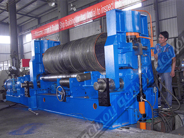上輥可以垂直移動、水平移動。上輥垂直位移采用液壓傳動,水平移動采用機械傳動。